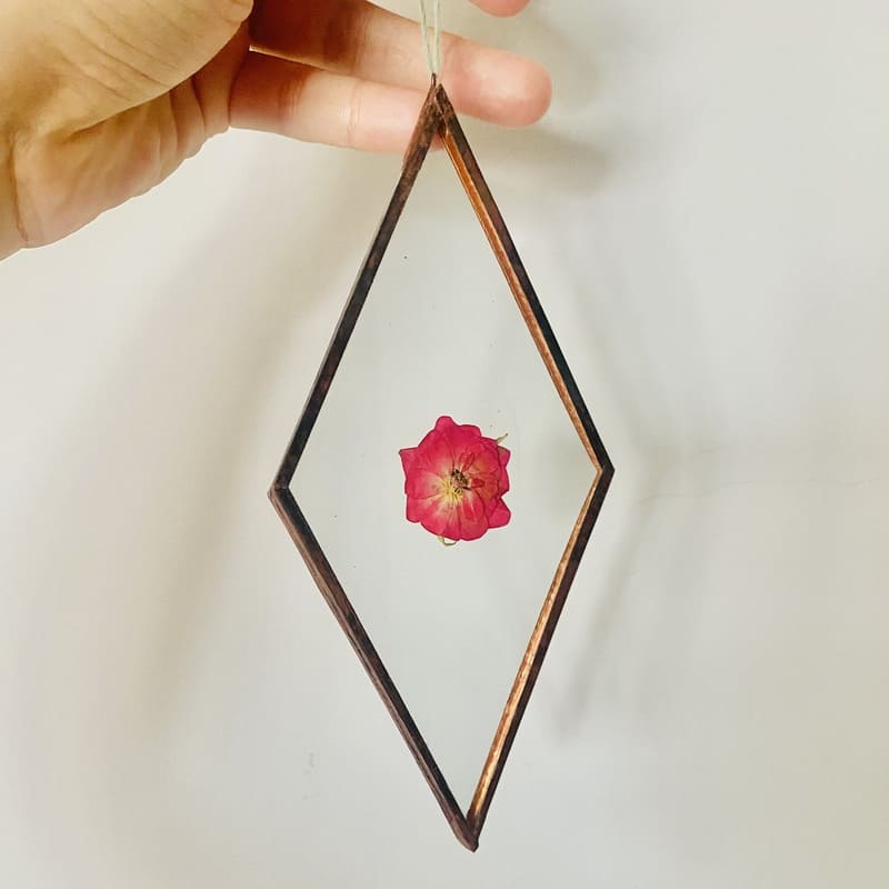– Cuadrito con flor preservada en vidrio reciclado y con la técnica Tiffany by Nyas Artesa.