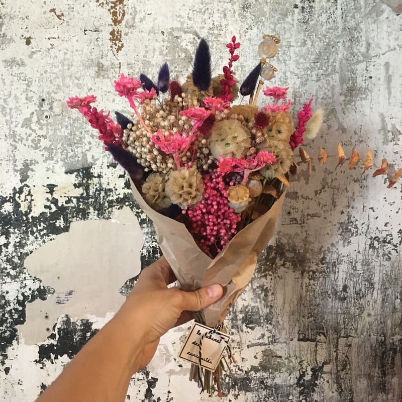 Y aquí va este dulce #outfitdomingero rosa. Compuesto de vestido midi de mangas murciélago anudado a la cintura. Con complementos que son maravilla, como este capazo handmade extra grande, pendientes vintage de pinza de los 70, pamela de paja, mantelito de ganchillo handmade y hoy le va perfecto un ramito de flores preservadas de Le Cabinet des Curiosités en rosas.