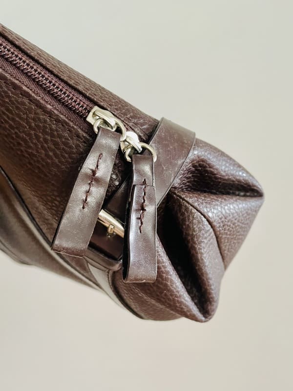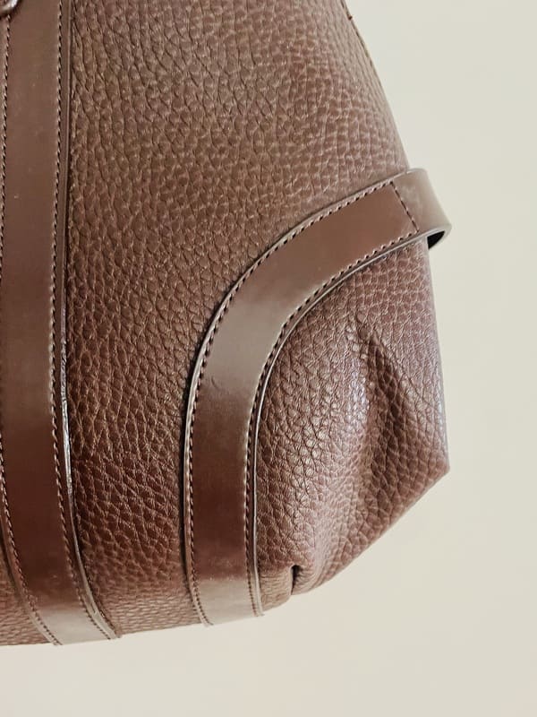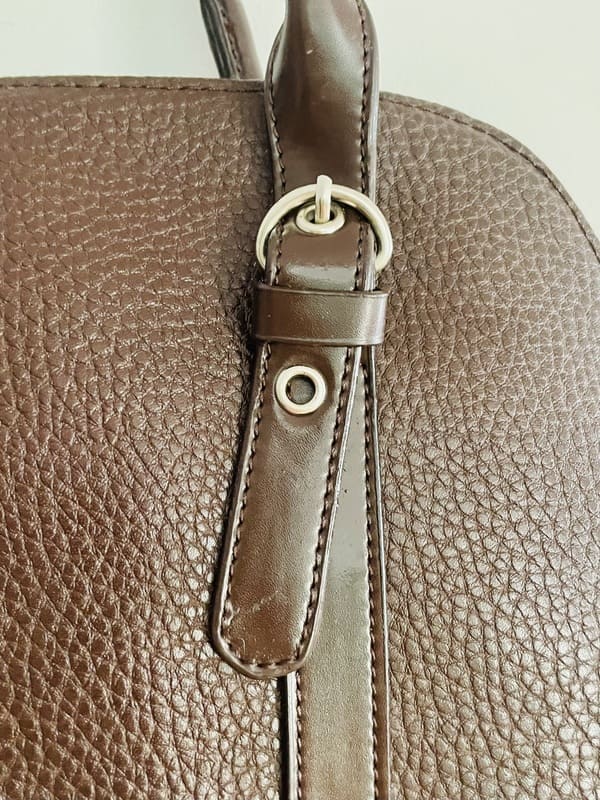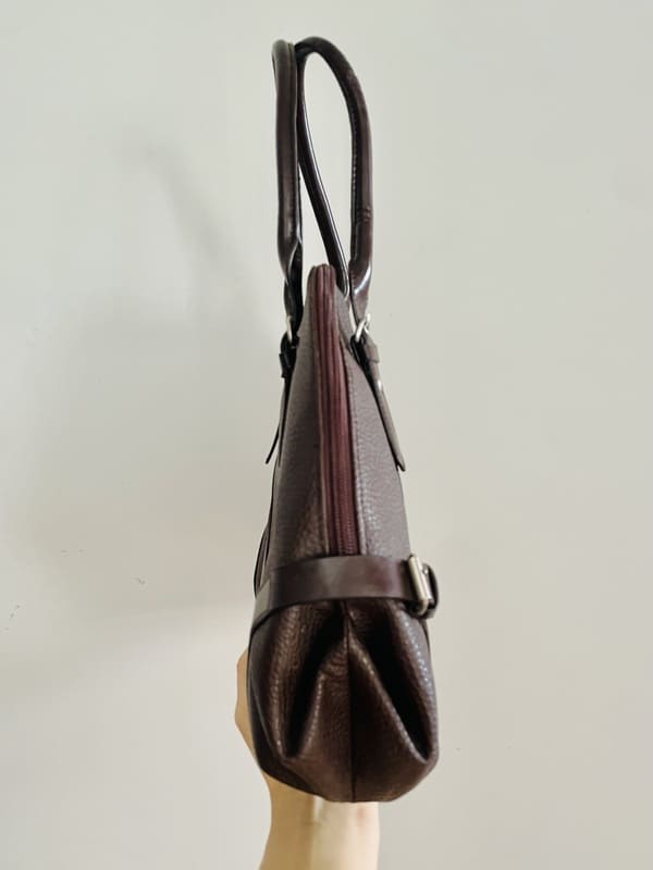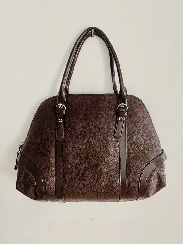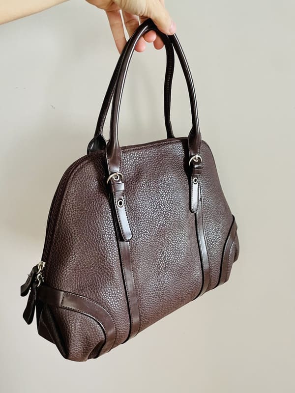 Bolso de mano vintage de los noventa. Nuevo, antiguo stock de fábrica. De polipile en color marrón chocolate. Tiene tres compartimentos y bolsillo interior con cremallera.Impecable.