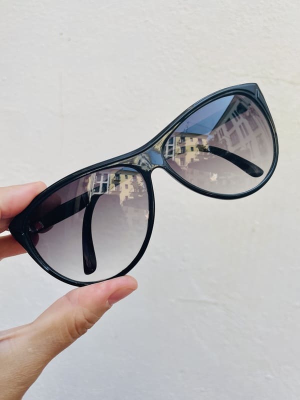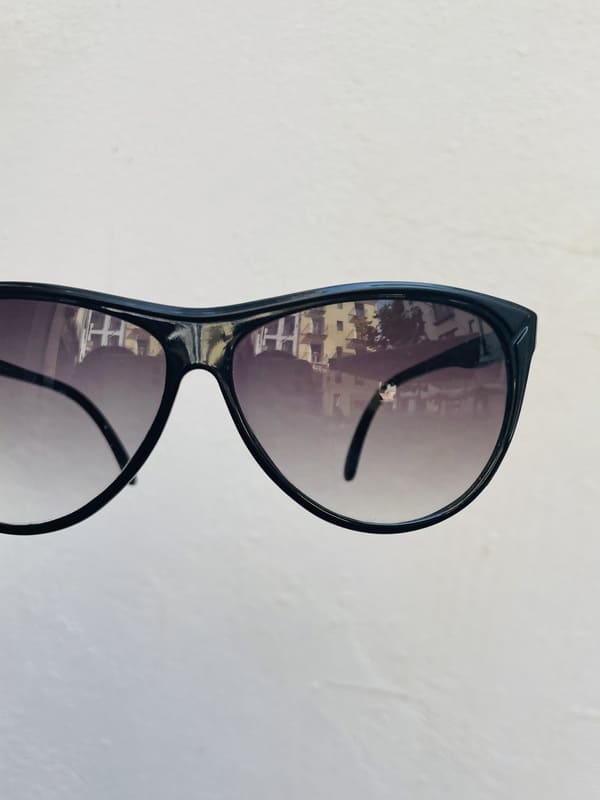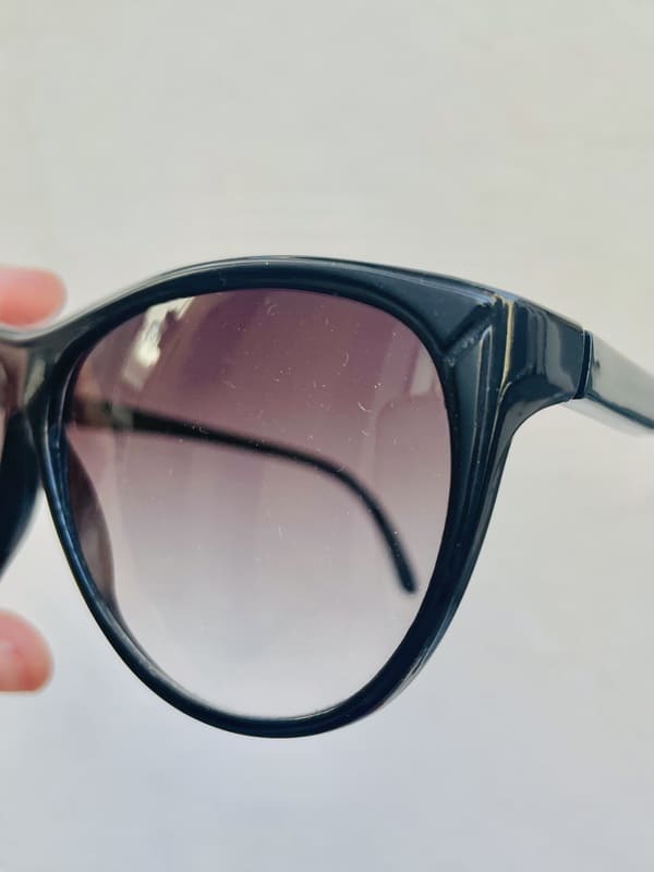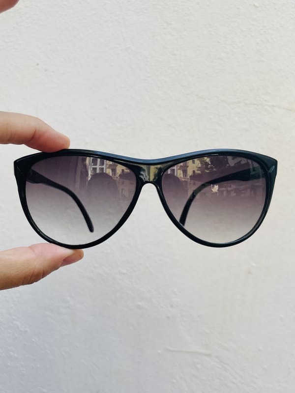 Gafas de sol vintage originales de los años ochenta. Nuevas, antiguo stock de óptica valenciana. Montura de pasta en color negro y cristales en negro degradado degradado. Incluyen funda de gafas y gamuza para limpiarlas. Impecables.