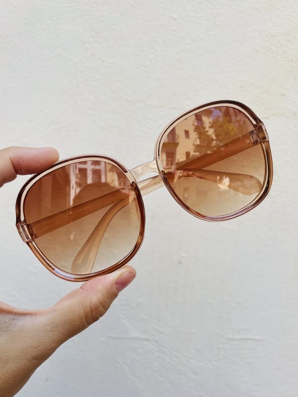 Gafas de sol retro nuevas, de inspiración sesentera. Modelo extragrande de pasta en color caramelo con cristales marrones degradados. Incluyen funda y gamuza para limpiarlas. 400 UV.