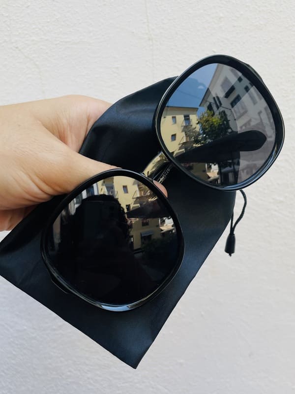 Gafas de sol retro nuevas, de inspiración sesentera. Modelo extragrande de pasta en color negro brillante y con cristales también en negro. Incluyen funda y gamuza para limpiarlas. 400 UV.