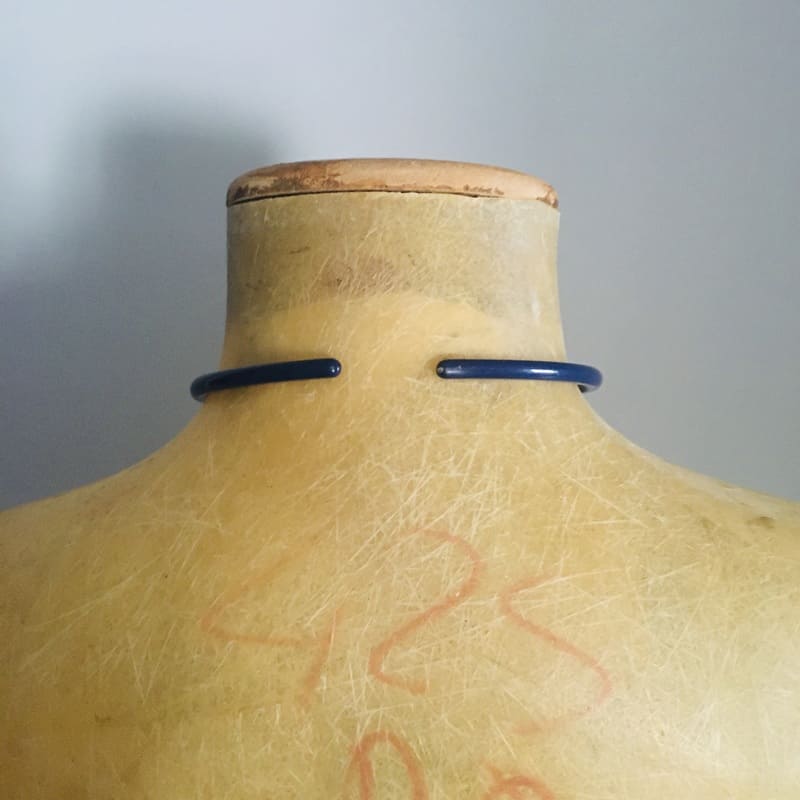 Gargantilla vintage. De plástico flexible de color azul marino, redondeada y fina. Se ajusta a cualquier medida. Nueva e impecable, resto de stock de tienda de los 70.