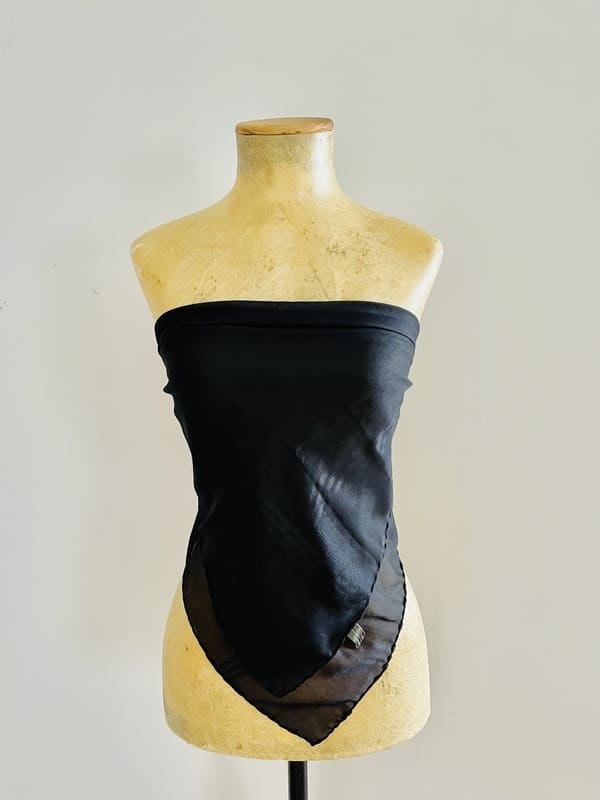 Pañuelo vintage  de Guy St. Honore. De forma cuadrada, de color negro en tejido semitransparente de poliéster. En perfecto estado. Medidas: 75% x 75%.