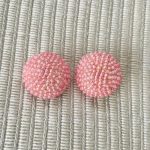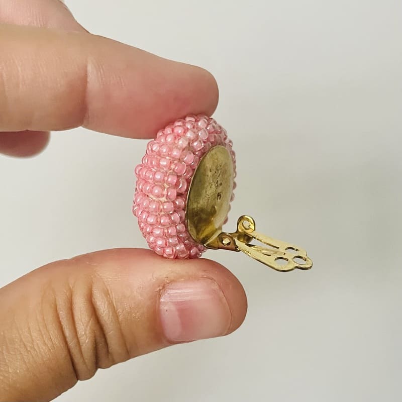 Pendientes vintage de pinza/clip. Nuevos, antiguo stock de los años 60. Compuesto por pequeñas cuentas en color rosa y con cierre metálico en dorado. En perfecto estado.