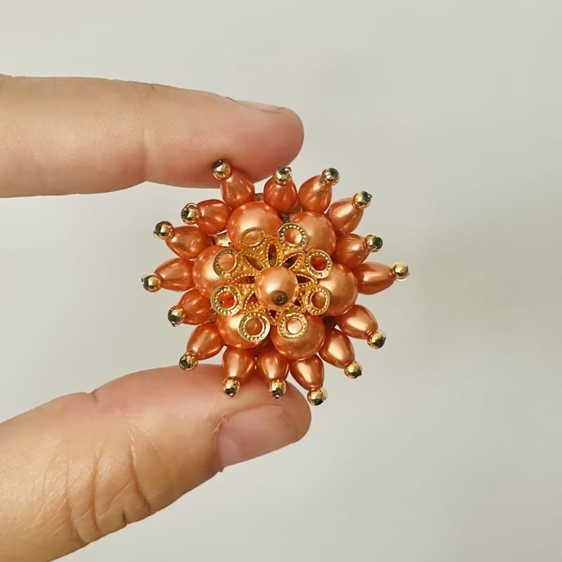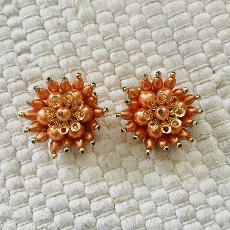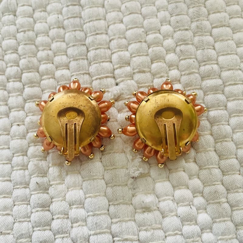 Pendientes vintage de los años 60 con cierre d epinza/clip. Nuevos, antiguo stock de la época. Metálicos, en color dorado y anaranjado. Impecables.