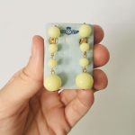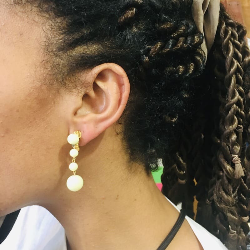 Pendientes vintage originales de los 60 de alta bisutería. Restos de stock, nuevos y a estrenar. Largos, con fila de piedras brillantes en color verde agua y cierre y detalles metálicos en dorado. Cierre de pinza/clip. Disponibles en 4 colores.