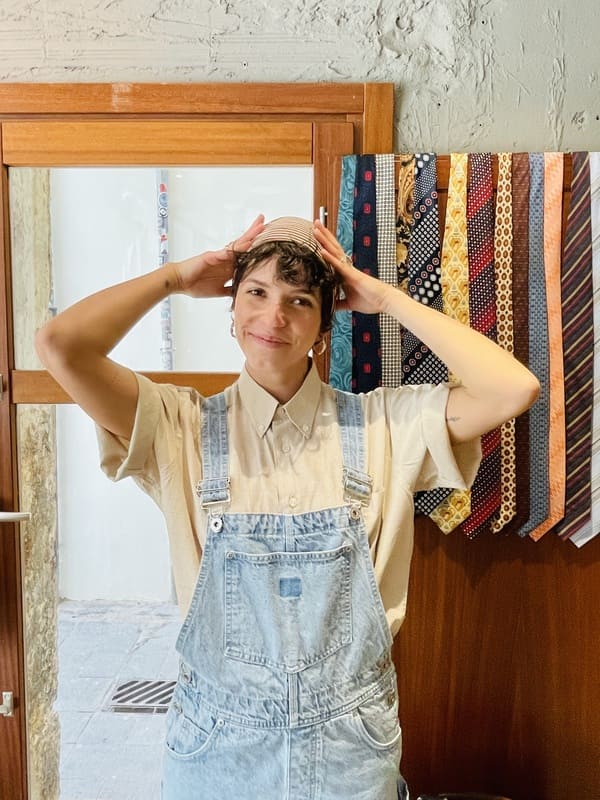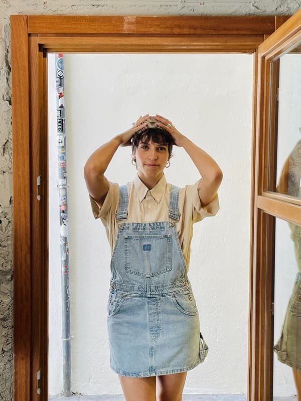 Peto vaquero second hand de algodón 100%. Color denim claro. Tirantes regulables, con seis bolsillos, cuatro delante y dos detrás. Impecable, en perfecto estado.