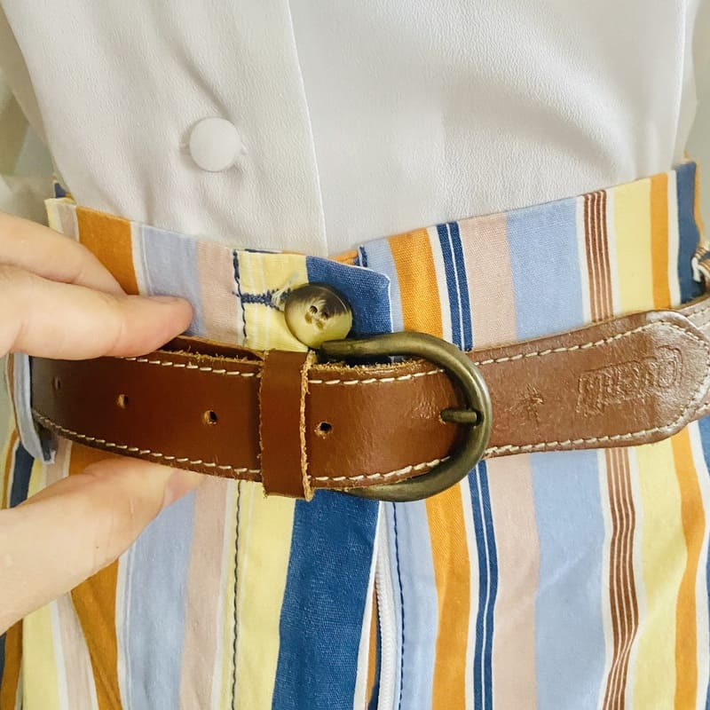 Cinturón vintage de piel de los 80 de la famosa marca de jeans Quenk. Talla: 85. 9,95€.