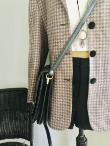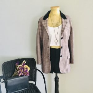 BLAZER Blazer 100% lana de pata de gallo rosa y gris, con solapas y botones en terciopelo negro. Talla 42. 19’95€. COMPRAR