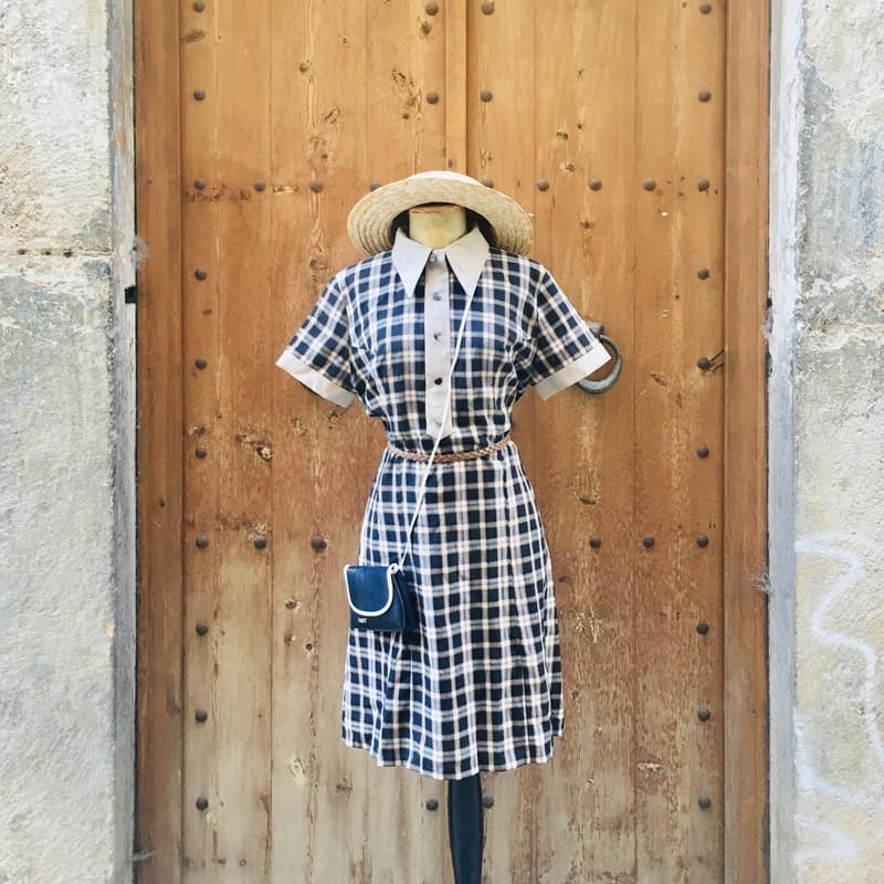 Los que nos seguís sabéis que somos muy de cuadros, en faldas, vestidos, camisas, pantalones, bolsos… nos gustan, nos identifican. Y si a un vestido mini de cuadros le sumamos los cuellos setenteros largos pues ya enamoramiento asegurado. Este vestido original de los 70 impecable y como nuevo además de acabados perfectos está lleno de detalles, por ejemplo la fila de botones esconde por dentro una larga cremallera, que lo