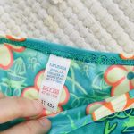 Biquini vintage nuevo, resto de stock de los 80. Composición: 80% nylon y 20% elastano. De color verde con estampado floral en amarillo y naranja. Sujetador de aros y braguitas de tiro alto.