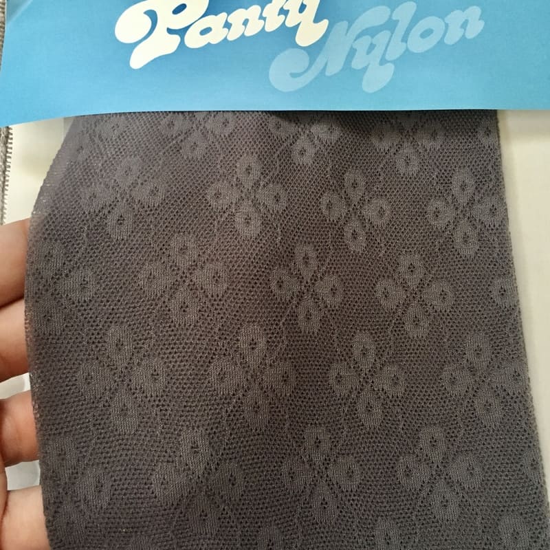 Panty vintage Nylon nuevo y a estrenar, restos de stock En color gris mate con dibujo de flores. 1005 poliamida. Con refuerzo en las punteras y con culotte.