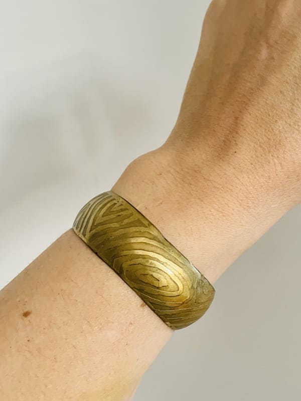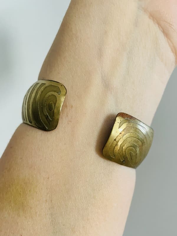 Pulsera vintage de latón en color dorado envejecido. Años setenta. En buen estado. Talla única.