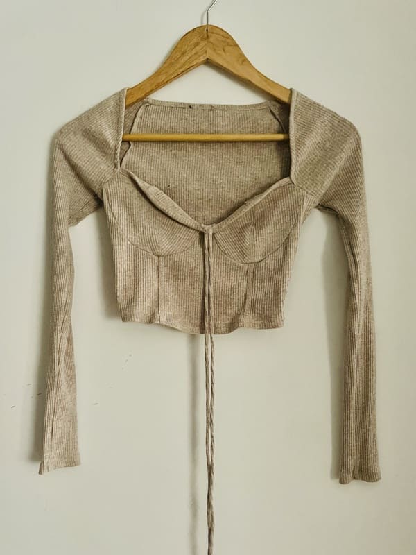 Top vintage en color arena en mezcla de algodón y acrílico. Elástico. Impecable, como nuevo.